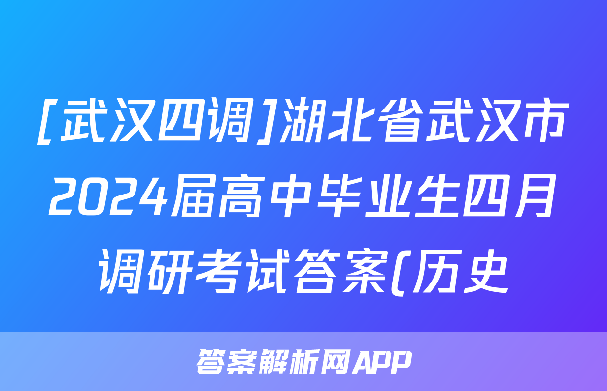 [武汉四调]湖北省武汉市2024届高中毕业生四月调研考试答案(历史),目前2025-2026衡水金卷答案网已经汇总了[武汉四调]湖北省武汉市2024届高中毕业生四月调研考试答案(历史)的各科答案和试卷,获取更多{{papers_name}}答案解析,请在关注本站。