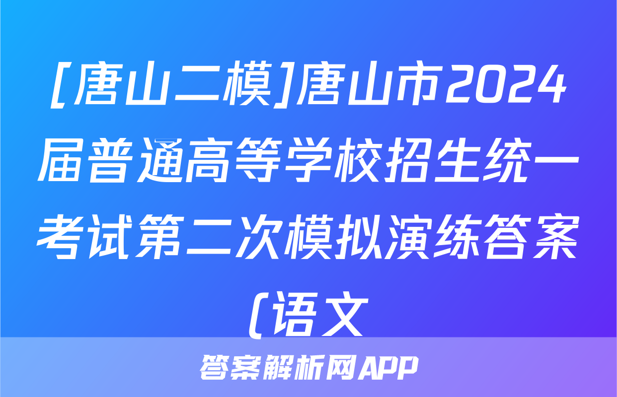 [唐山二模]唐山市2024届普通高等学校招生统一考试第二次模拟演练答案(语文),目前2025-2026衡水金卷答案网已经汇总了[唐山二模]唐山市2024届普通高等学校招生统一考试第二次模拟演练答案(语文)的各科答案和试卷,获取更多{{papers_name}}答案解析,请在关注本站。