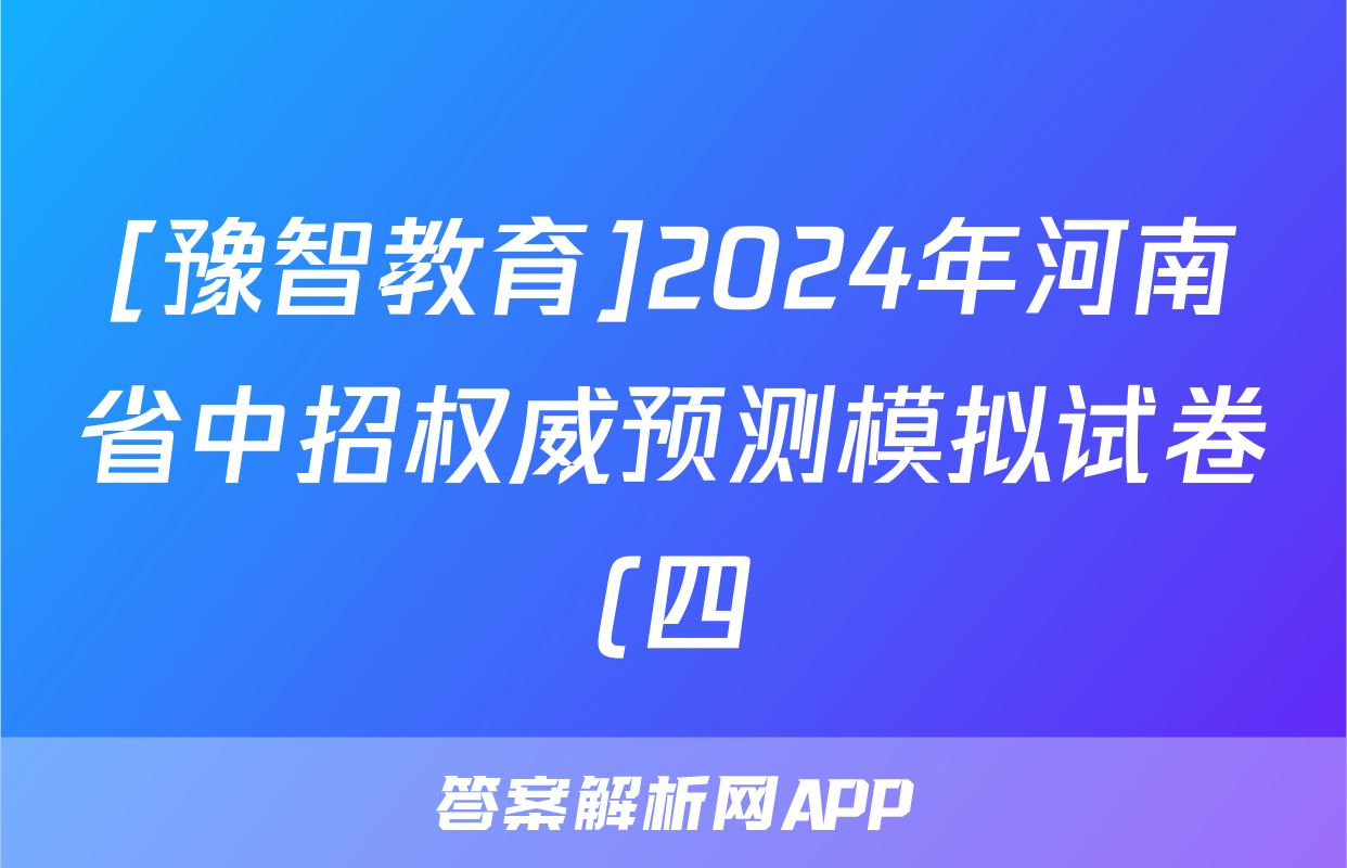 [豫智教育]2024年河南省中招权威预测模拟试卷(四)4语文答案,目前2025-2026衡水金卷答案网已经汇总了[豫智教育]2024年河南省中招权威预测模拟试卷(四)4语文答案的各科答案和试卷,获取更多{{papers_name}}答案解析,请在关注本站。