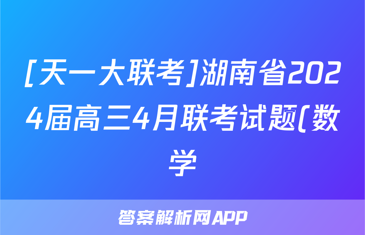 [天一大联考]湖南省2024届高三4月联考试题(数学),目前2025-2026衡水金卷答案网已经汇总了[天一大联考]湖南省2024届高三4月联考试题(数学)的各科答案和试卷,获取更多{{papers_name}}答案解析,请在关注本站。
