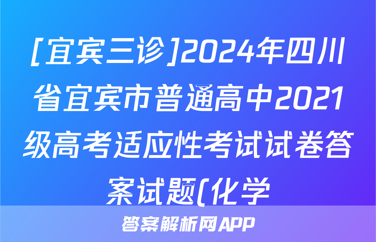 [宜宾三诊]2024年四川省宜宾市普通高中2021级高考适应性考试试卷答案试题(化学),目前2025-2026衡水金卷答案网已经汇总了[宜宾三诊]2024年四川省宜宾市普通高中2021级高考适应性考试试卷答案试题(化学)的各科答案和试卷,获取更多{{papers_name}}答案解析,请在关注本站。
