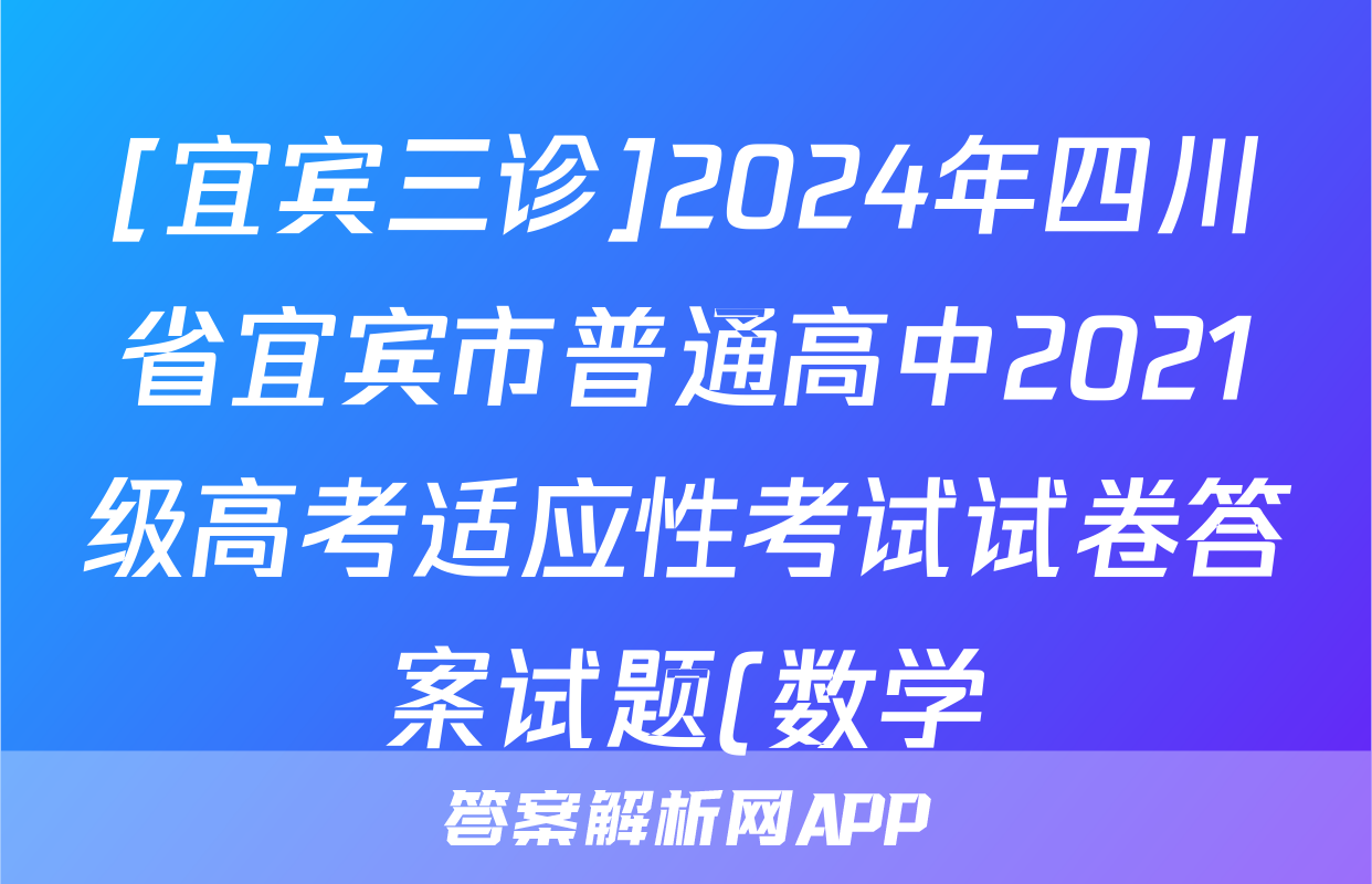 [宜宾三诊]2024年四川省宜宾市普通高中2021级高考适应性考试试卷答案试题(数学),目前2025-2026衡水金卷答案网已经汇总了[宜宾三诊]2024年四川省宜宾市普通高中2021级高考适应性考试试卷答案试题(数学)的各科答案和试卷,获取更多{{papers_name}}答案解析,请在关注本站。