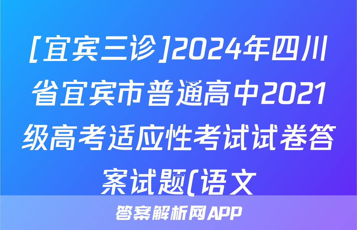 [宜宾三诊]2024年四川省宜宾市普通高中2021级高考适应性考试试卷答案试题(语文),目前2025-2026衡水金卷答案网已经汇总了[宜宾三诊]2024年四川省宜宾市普通高中2021级高考适应性考试试卷答案试题(语文)的各科答案和试卷,获取更多{{papers_name}}答案解析,请在关注本站。