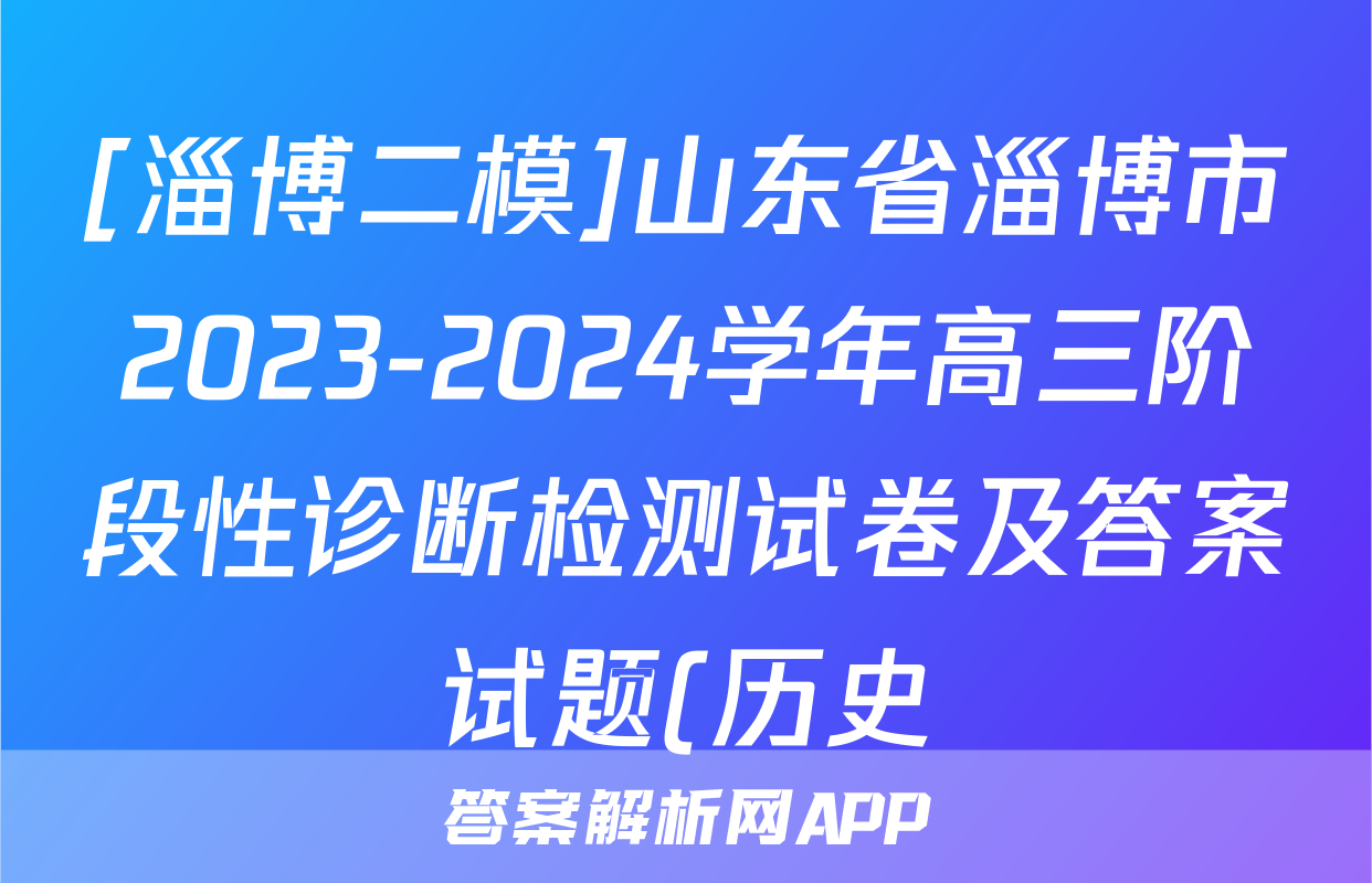 [淄博二模]山东省淄博市2023-2024学年高三阶段性诊断检测试卷及答案试题(历史),目前2025-2026衡水金卷答案网已经汇总了[淄博二模]山东省淄博市2023-2024学年高三阶段性诊断检测试卷及答案试题(历史)的各科答案和试卷,获取更多{{papers_name}}答案解析,请在关注本站。