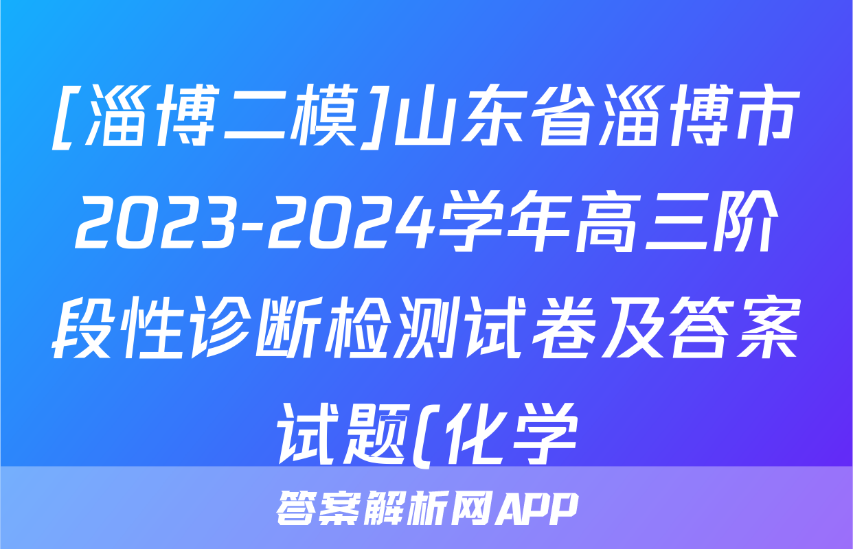 [淄博二模]山东省淄博市2023-2024学年高三阶段性诊断检测试卷及答案试题(化学),目前2025-2026衡水金卷答案网已经汇总了[淄博二模]山东省淄博市2023-2024学年高三阶段性诊断检测试卷及答案试题(化学)的各科答案和试卷,获取更多{{papers_name}}答案解析,请在关注本站。