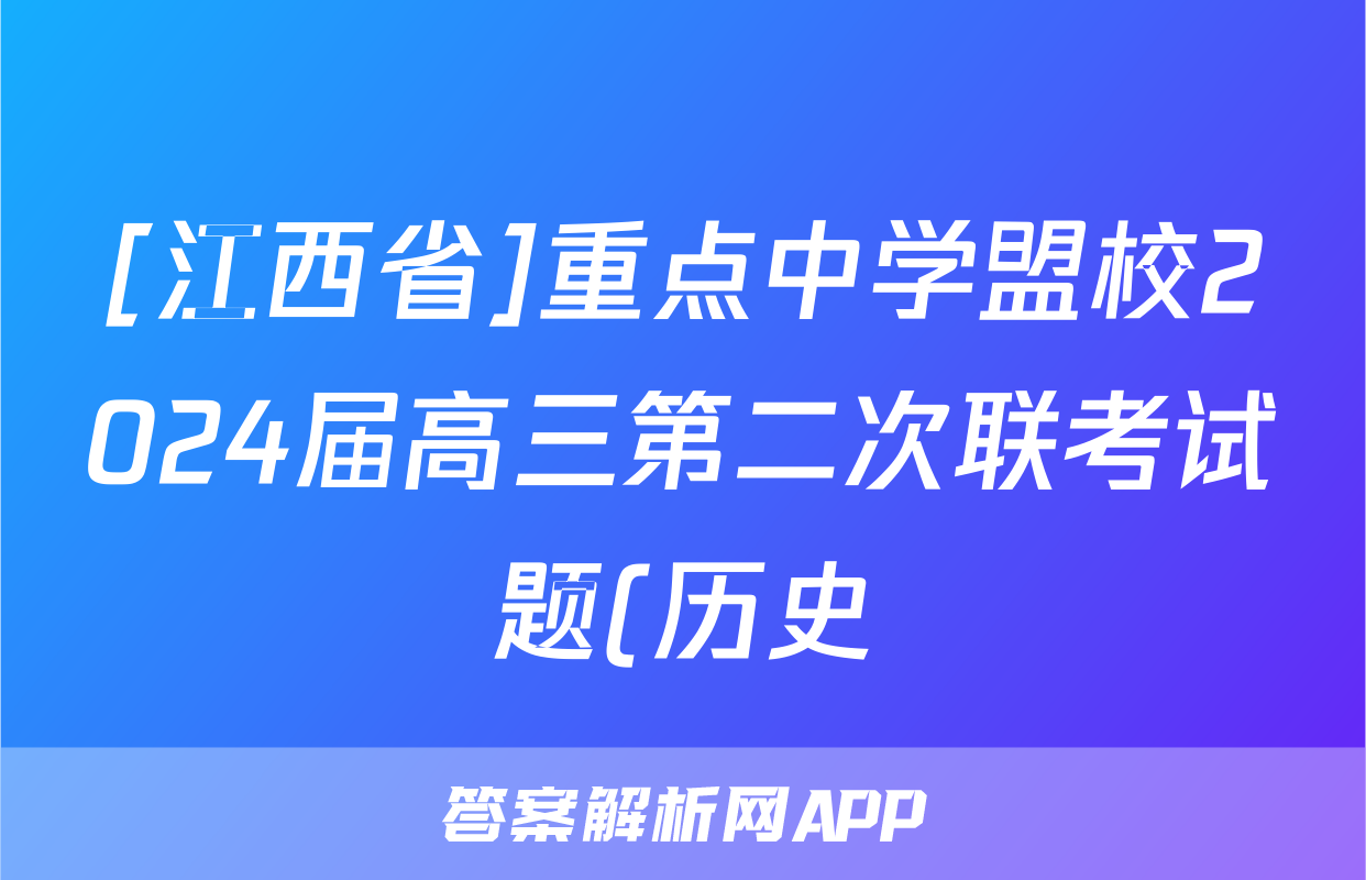 [江西省]重点中学盟校2024届高三第二次联考试题(历史),目前2025-2026衡水金卷答案网已经汇总了[江西省]重点中学盟校2024届高三第二次联考试题(历史)的各科答案和试卷,获取更多{{papers_name}}答案解析,请在关注本站。