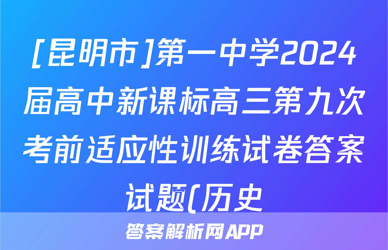 [昆明市]第一中学2024届高中新课标高三第九次考前适应性训练试卷答案试题(历史),目前2025-2026衡水金卷答案网已经汇总了[昆明市]第一中学2024届高中新课标高三第九次考前适应性训练试卷答案试题(历史)的各科答案和试卷,获取更多{{papers_name}}答案解析,请在关注本站。