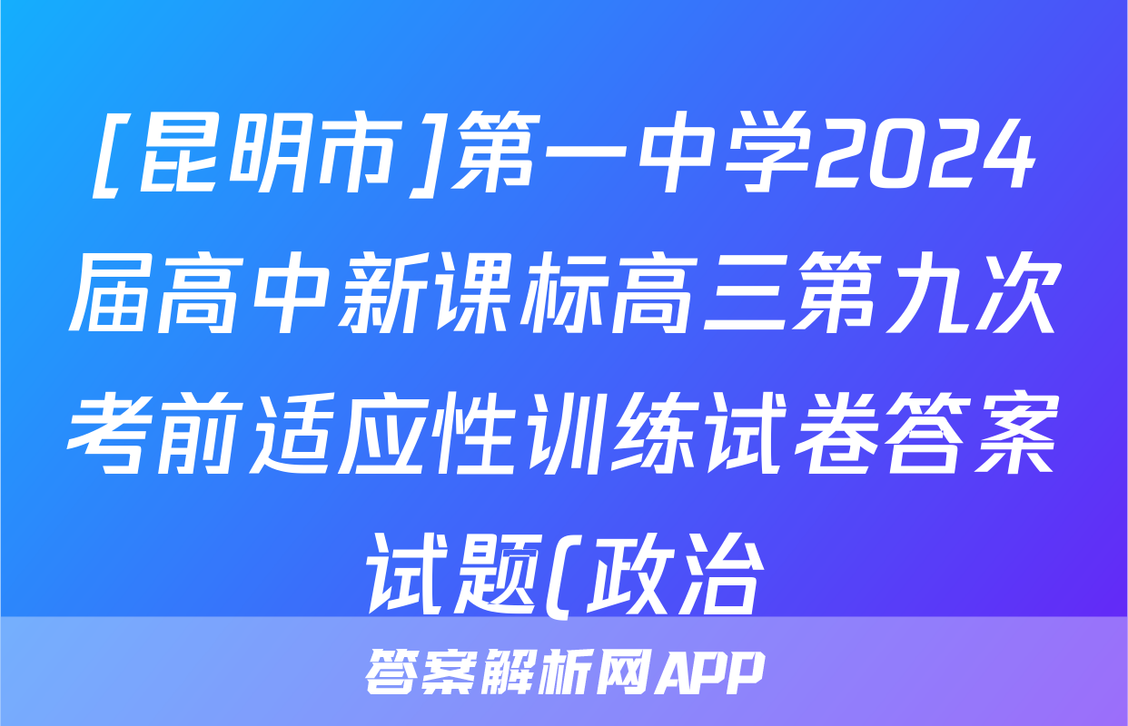 [昆明市]第一中学2024届高中新课标高三第九次考前适应性训练试卷答案试题(政治),目前2025-2026衡水金卷答案网已经汇总了[昆明市]第一中学2024届高中新课标高三第九次考前适应性训练试卷答案试题(政治)的各科答案和试卷,获取更多{{papers_name}}答案解析,请在关注本站。