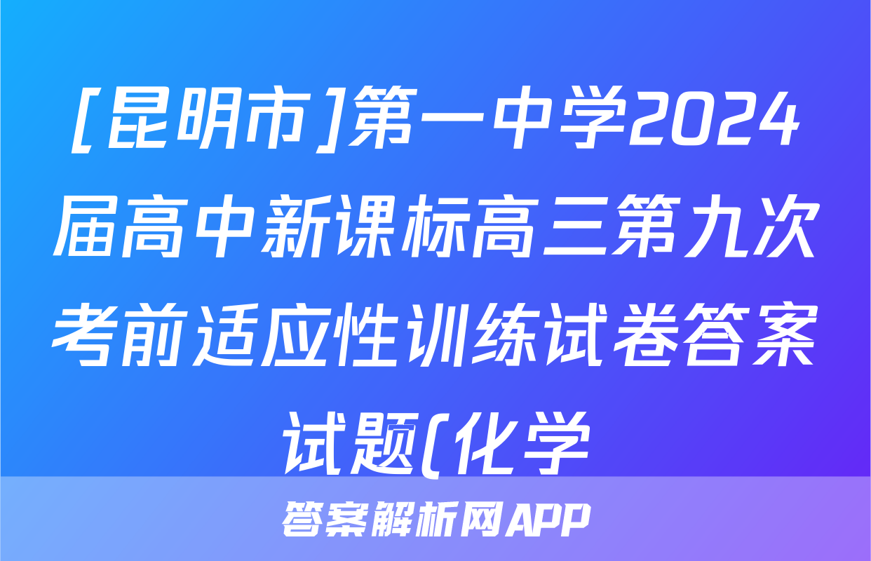 [昆明市]第一中学2024届高中新课标高三第九次考前适应性训练试卷答案试题(化学),目前2025-2026衡水金卷答案网已经汇总了[昆明市]第一中学2024届高中新课标高三第九次考前适应性训练试卷答案试题(化学)的各科答案和试卷,获取更多{{papers_name}}答案解析,请在关注本站。