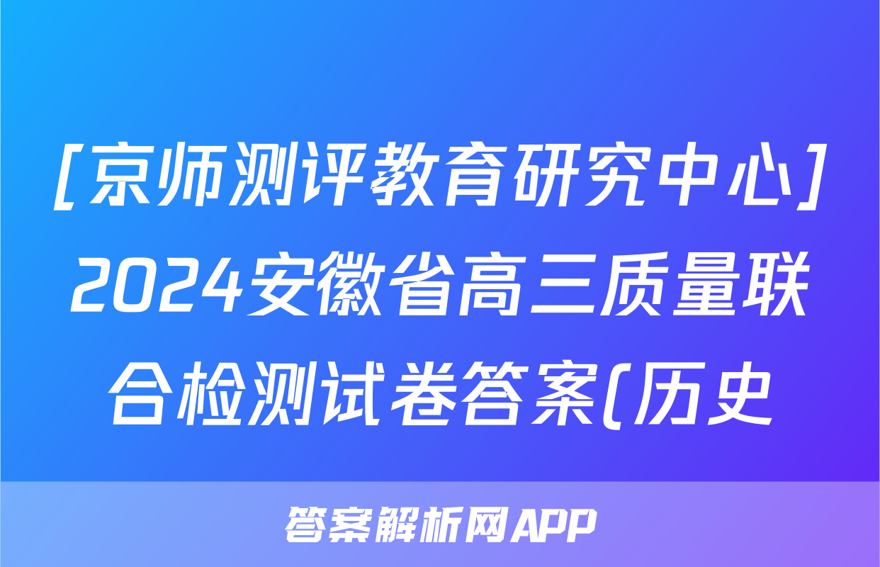 [京师测评教育研究中心]2024安徽省高三质量联合检测试卷答案(历史),目前2025-2026衡水金卷答案网已经汇总了[京师测评教育研究中心]2024安徽省高三质量联合检测试卷答案(历史)的各科答案和试卷,获取更多{{papers_name}}答案解析,请在关注本站。