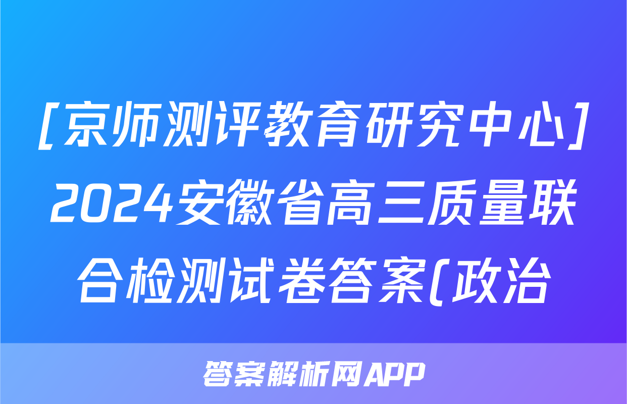 [京师测评教育研究中心]2024安徽省高三质量联合检测试卷答案(政治),目前2025-2026衡水金卷答案网已经汇总了[京师测评教育研究中心]2024安徽省高三质量联合检测试卷答案(政治)的各科答案和试卷,获取更多{{papers_name}}答案解析,请在关注本站。