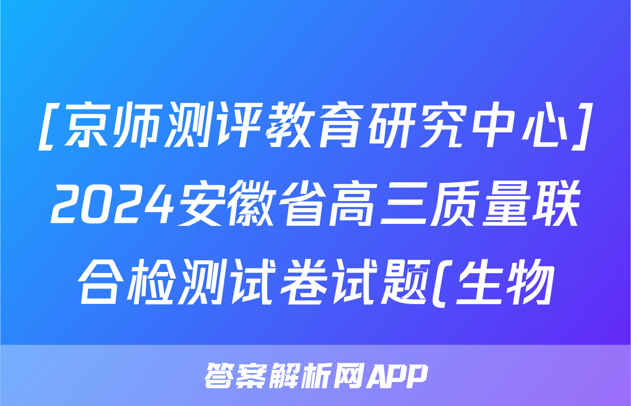 [京师测评教育研究中心]2024安徽省高三质量联合检测试卷试题(生物),目前2025-2026衡水金卷答案网已经汇总了[京师测评教育研究中心]2024安徽省高三质量联合检测试卷试题(生物)的各科答案和试卷,获取更多{{papers_name}}答案解析,请在关注本站。