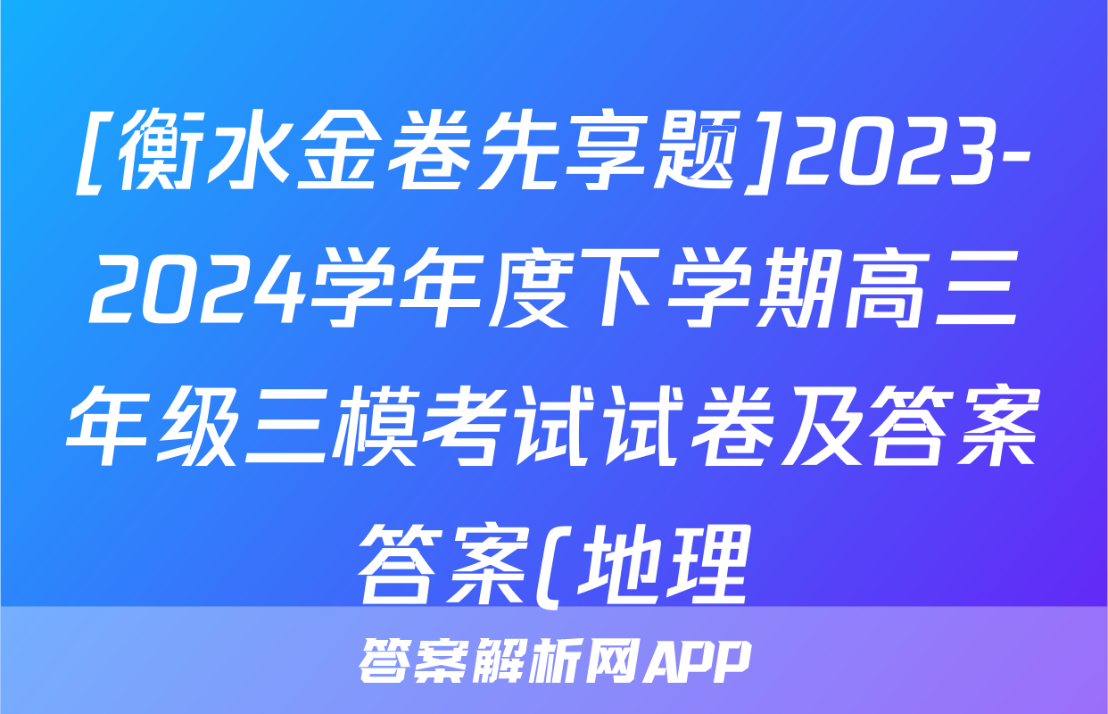 [衡水金卷先享题]2023-2024学年度下学期高三年级三模考试试卷及答案答案(地理),目前2025-2026衡水金卷答案网已经汇总了[衡水金卷先享题]2023-2024学年度下学期高三年级三模考试试卷及答案答案(地理)的各科答案和试卷,获取更多{{papers_name}}答案解析,请在关注本站。