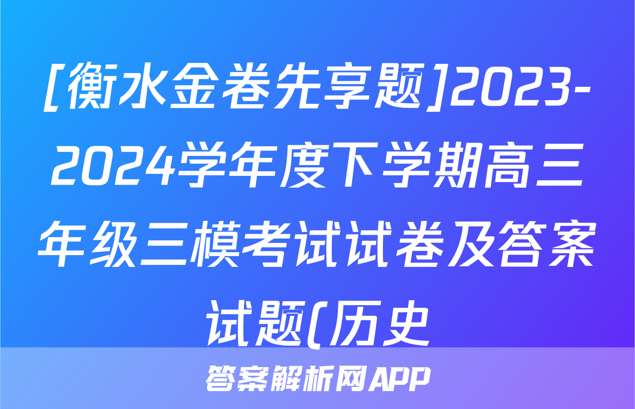 [衡水金卷先享题]2023-2024学年度下学期高三年级三模考试试卷及答案试题(历史),目前2025-2026衡水金卷答案网已经汇总了[衡水金卷先享题]2023-2024学年度下学期高三年级三模考试试卷及答案试题(历史)的各科答案和试卷,获取更多{{papers_name}}答案解析,请在关注本站。
