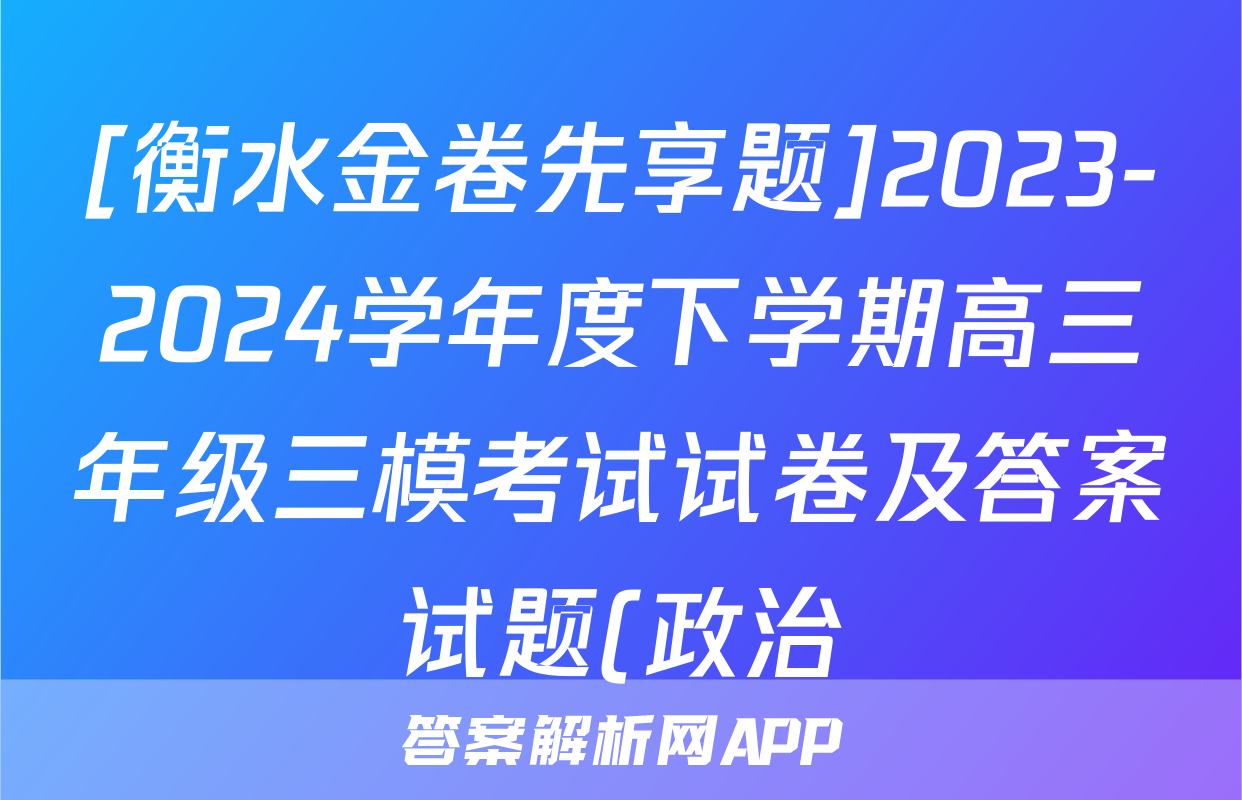 [衡水金卷先享题]2023-2024学年度下学期高三年级三模考试试卷及答案试题(政治),目前2025-2026衡水金卷答案网已经汇总了[衡水金卷先享题]2023-2024学年度下学期高三年级三模考试试卷及答案试题(政治)的各科答案和试卷,获取更多{{papers_name}}答案解析,请在关注本站。