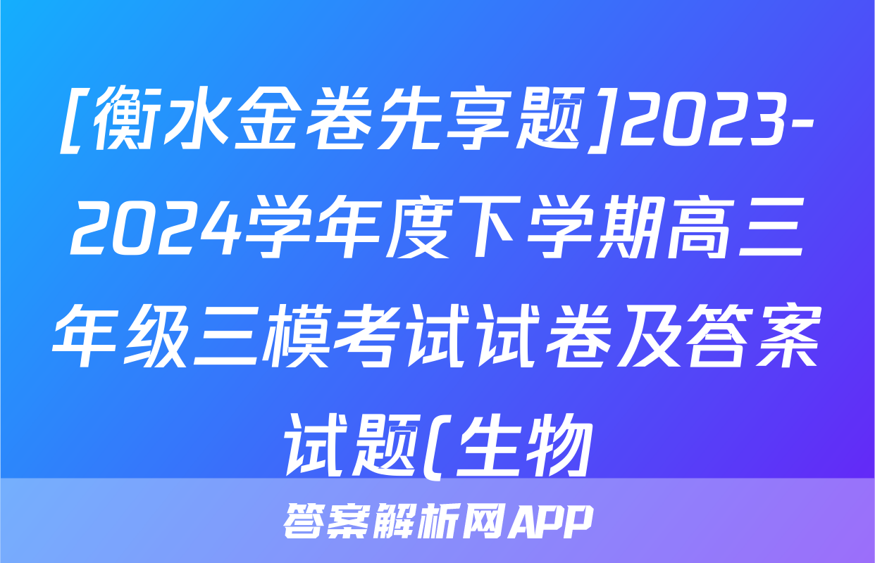 [衡水金卷先享题]2023-2024学年度下学期高三年级三模考试试卷及答案试题(生物),目前2025-2026衡水金卷答案网已经汇总了[衡水金卷先享题]2023-2024学年度下学期高三年级三模考试试卷及答案试题(生物)的各科答案和试卷,获取更多{{papers_name}}答案解析,请在关注本站。