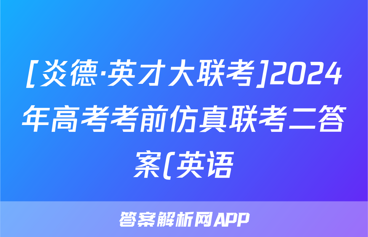 [炎德·英才大联考]2024年高考考前仿真联考二答案(英语),目前2025-2026衡水金卷答案网已经汇总了[炎德·英才大联考]2024年高考考前仿真联考二答案(英语)的各科答案和试卷,获取更多{{papers_name}}答案解析,请在关注本站。