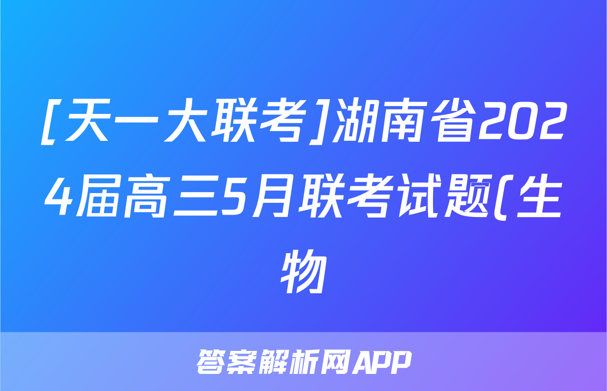 [天一大联考]湖南省2024届高三5月联考试题(生物),目前2025-2026衡水金卷答案网已经汇总了[天一大联考]湖南省2024届高三5月联考试题(生物)的各科答案和试卷,获取更多{{papers_name}}答案解析,请在关注本站。
