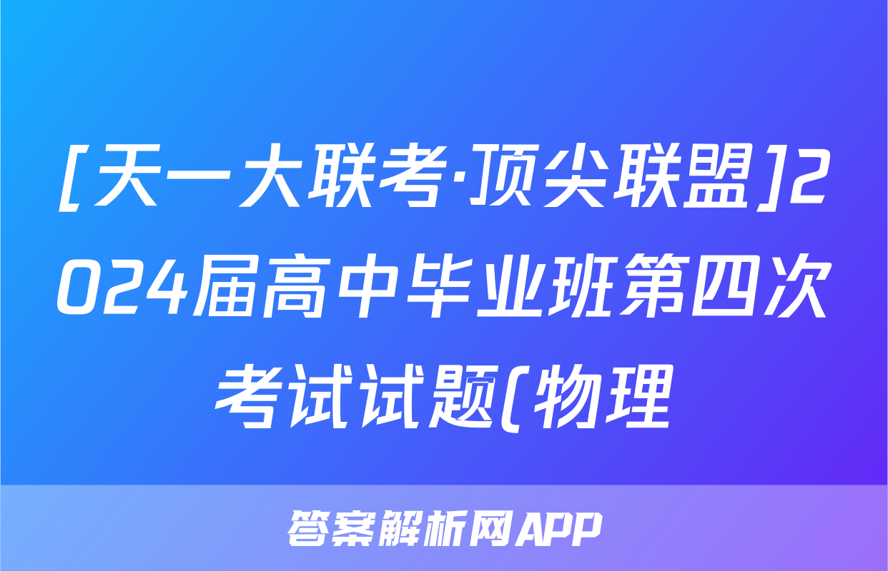 [天一大联考·顶尖联盟]2024届高中毕业班第四次考试试题(物理),目前2025-2026衡水金卷答案网已经汇总了[天一大联考·顶尖联盟]2024届高中毕业班第四次考试试题(物理)的各科答案和试卷,获取更多{{papers_name}}答案解析,请在关注本站。
