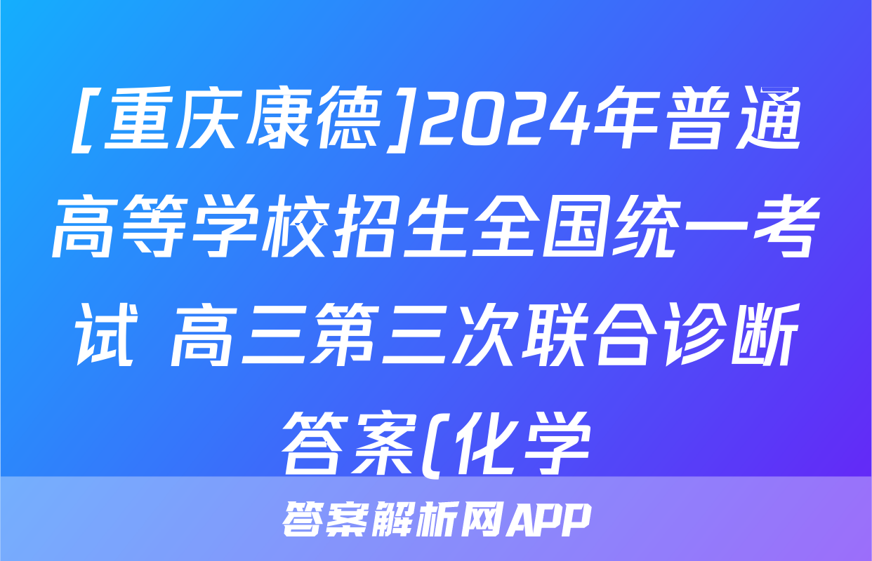 [重庆康德]2024年普通高等学校招生全国统一考试 高三第三次联合诊断答案(化学),目前2025-2026衡水金卷答案网已经汇总了[重庆康德]2024年普通高等学校招生全国统一考试 高三第三次联合诊断答案(化学)的各科答案和试卷,获取更多{{papers_name}}答案解析,请在关注本站。