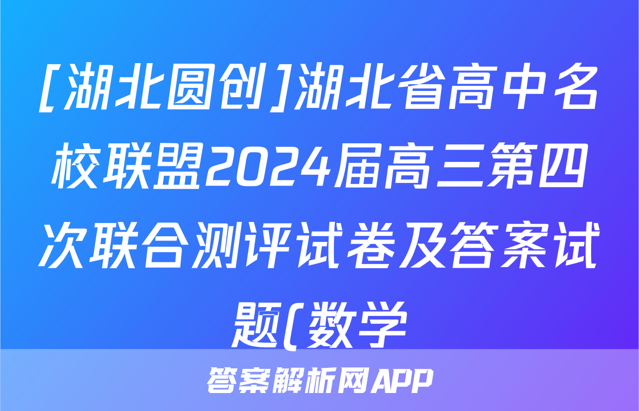 [湖北圆创]湖北省高中名校联盟2024届高三第四次联合测评试卷及答案试题(数学),目前2025-2026衡水金卷答案网已经汇总了[湖北圆创]湖北省高中名校联盟2024届高三第四次联合测评试卷及答案试题(数学)的各科答案和试卷,获取更多{{papers_name}}答案解析,请在关注本站。