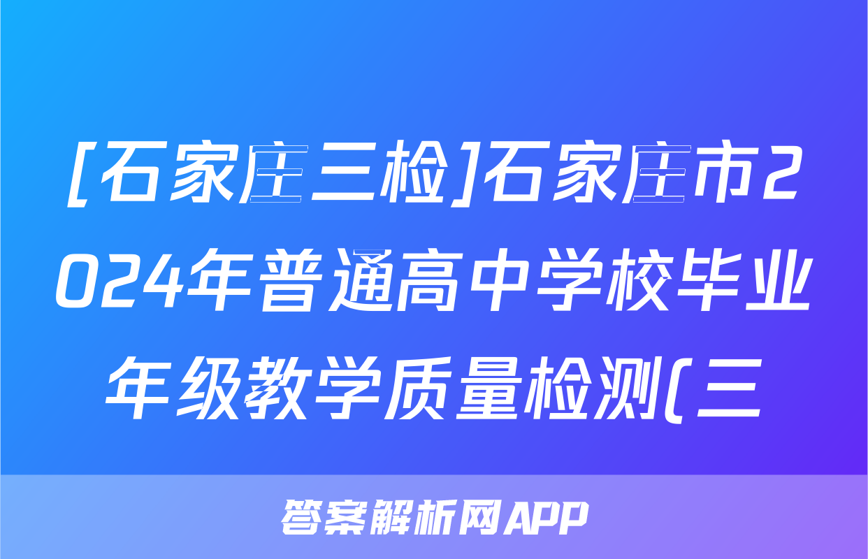 [石家庄三检]石家庄市2024年普通高中学校毕业年级教学质量检测(三)3试题(生物),目前2025-2026衡水金卷答案网已经汇总了[石家庄三检]石家庄市2024年普通高中学校毕业年级教学质量检测(三)3试题(生物)的各科答案和试卷,获取更多{{papers_name}}答案解析,请在关注本站。