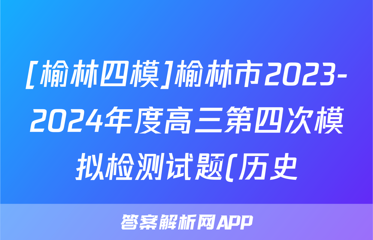 [榆林四模]榆林市2023-2024年度高三第四次模拟检测试题(历史),目前2025-2026衡水金卷答案网已经汇总了[榆林四模]榆林市2023-2024年度高三第四次模拟检测试题(历史)的各科答案和试卷,获取更多{{papers_name}}答案解析,请在关注本站。