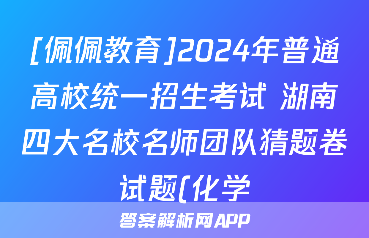 [佩佩教育]2024年普通高校统一招生考试 湖南四大名校名师团队猜题卷试题(化学),目前2025-2026衡水金卷答案网已经汇总了[佩佩教育]2024年普通高校统一招生考试 湖南四大名校名师团队猜题卷试题(化学)的各科答案和试卷,获取更多{{papers_name}}答案解析,请在关注本站。