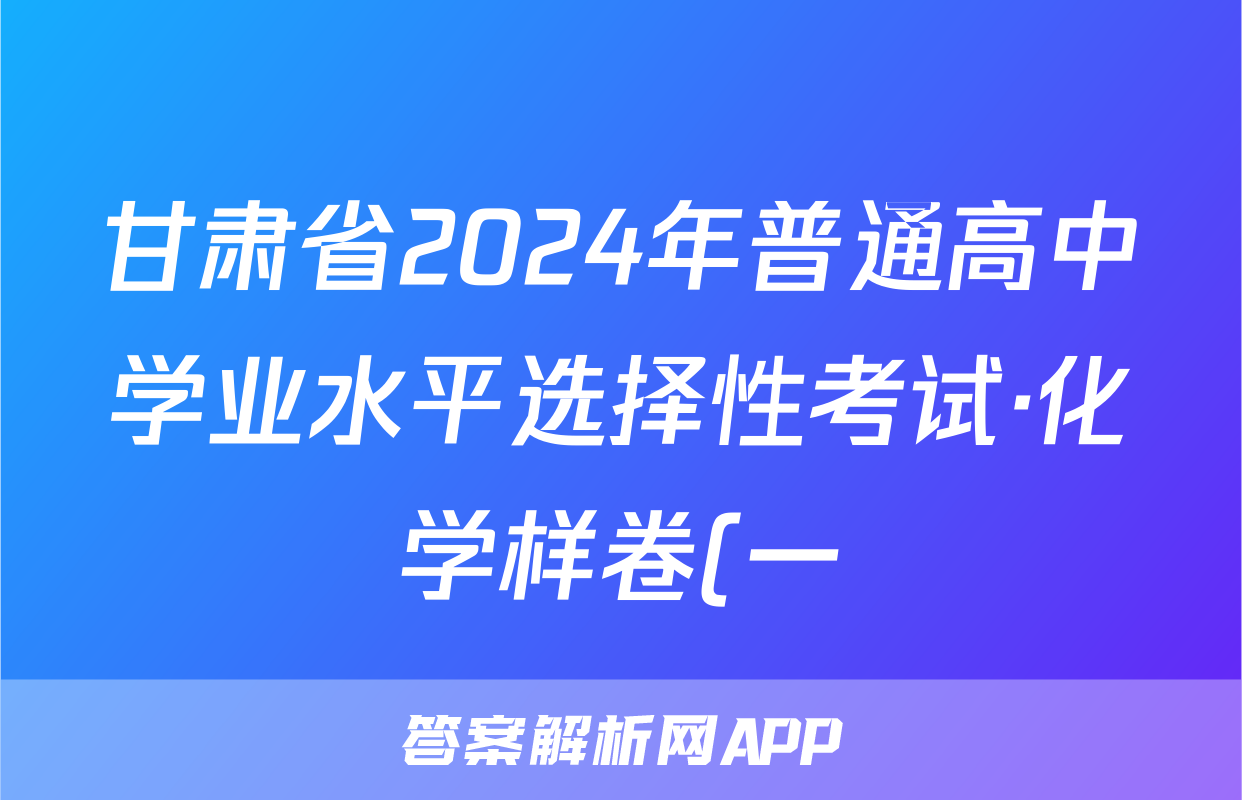 甘肃省2024年普通高中学业水平选择性考试·化学样卷(一)1[24·(新高考)高考样卷·化学·GS]试题,目前2025-2026衡水金卷答案网已经汇总了甘肃省2024年普通高中学业水平选择性考试·化学样卷(一)1[24·(新高考)高考样卷·化学·GS]试题的各科答案和试卷,获取更多{{papers_name}}答案解析,请在关注本站。