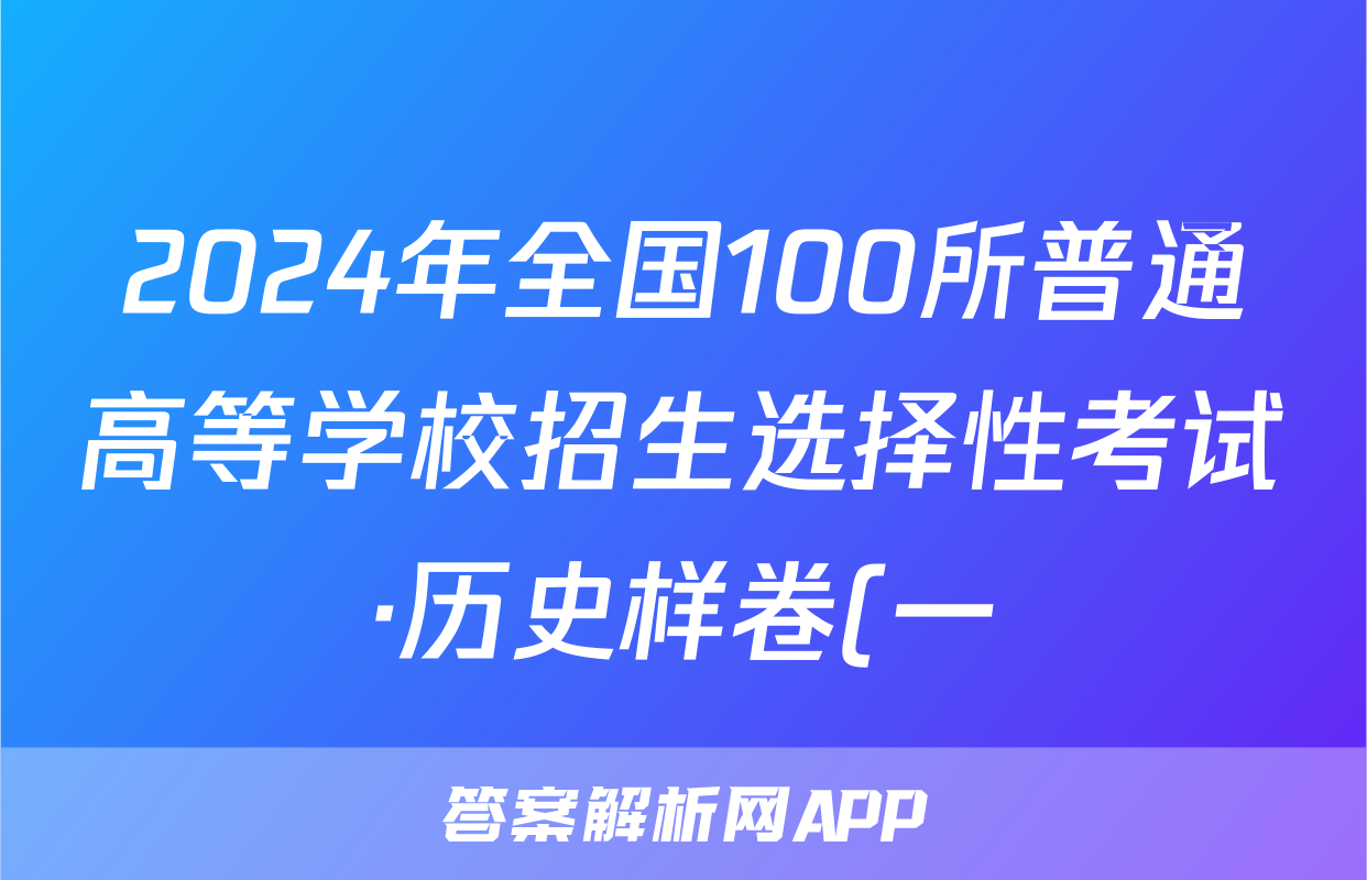 2024年全国100所普通高等学校招生选择性考试·历史样卷(一)1[24·(新高考)高考样卷·历史·JH]答案,目前2025-2026衡水金卷答案网已经汇总了2024年全国100所普通高等学校招生选择性考试·历史样卷(一)1[24·(新高考)高考样卷·历史·JH]答案的各科答案和试卷,获取更多{{papers_name}}答案解析,请在关注本站。