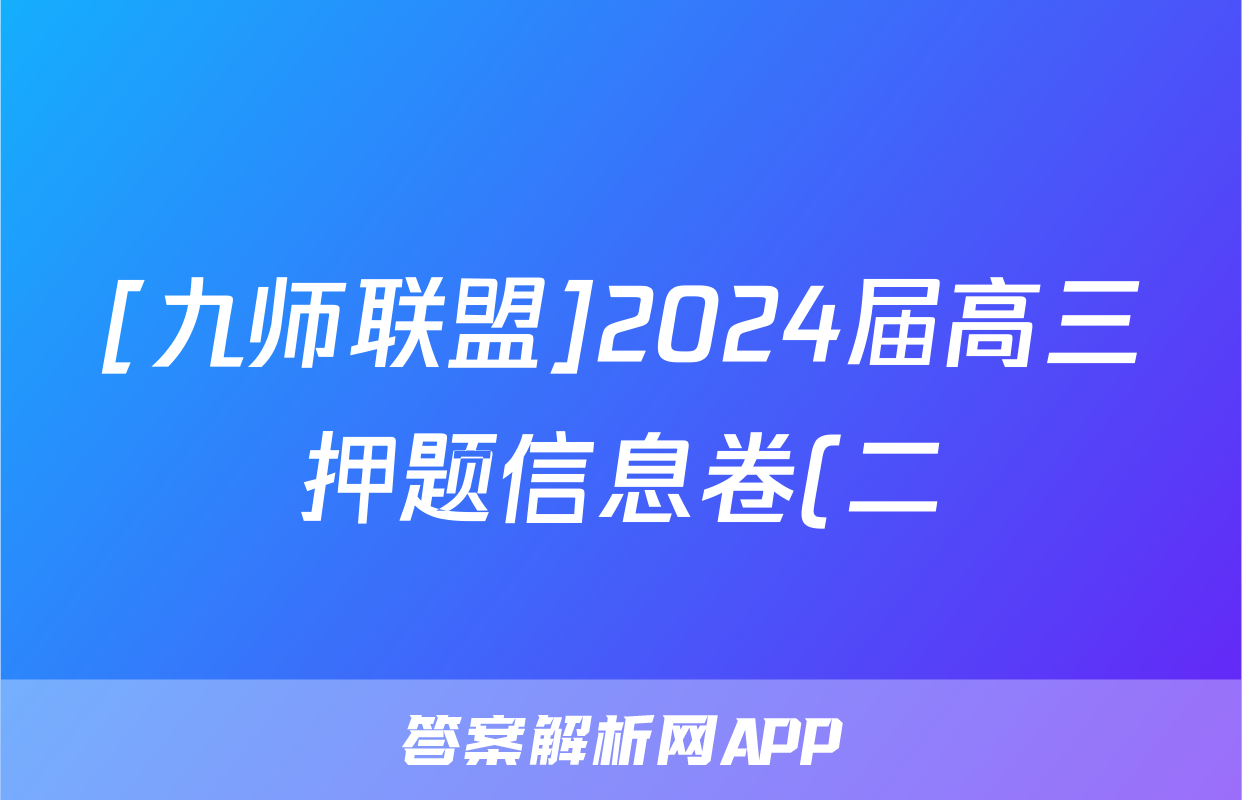 2、九师联盟2024高三押题信息卷二理综