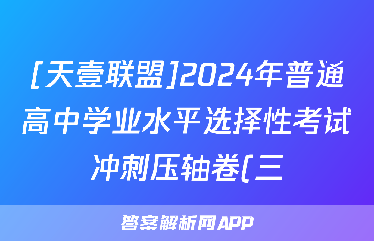 2、天壹联盟 2024年普通高中学业水选择性考试冲刺压轴卷(三)3试卷答案试题(历史)