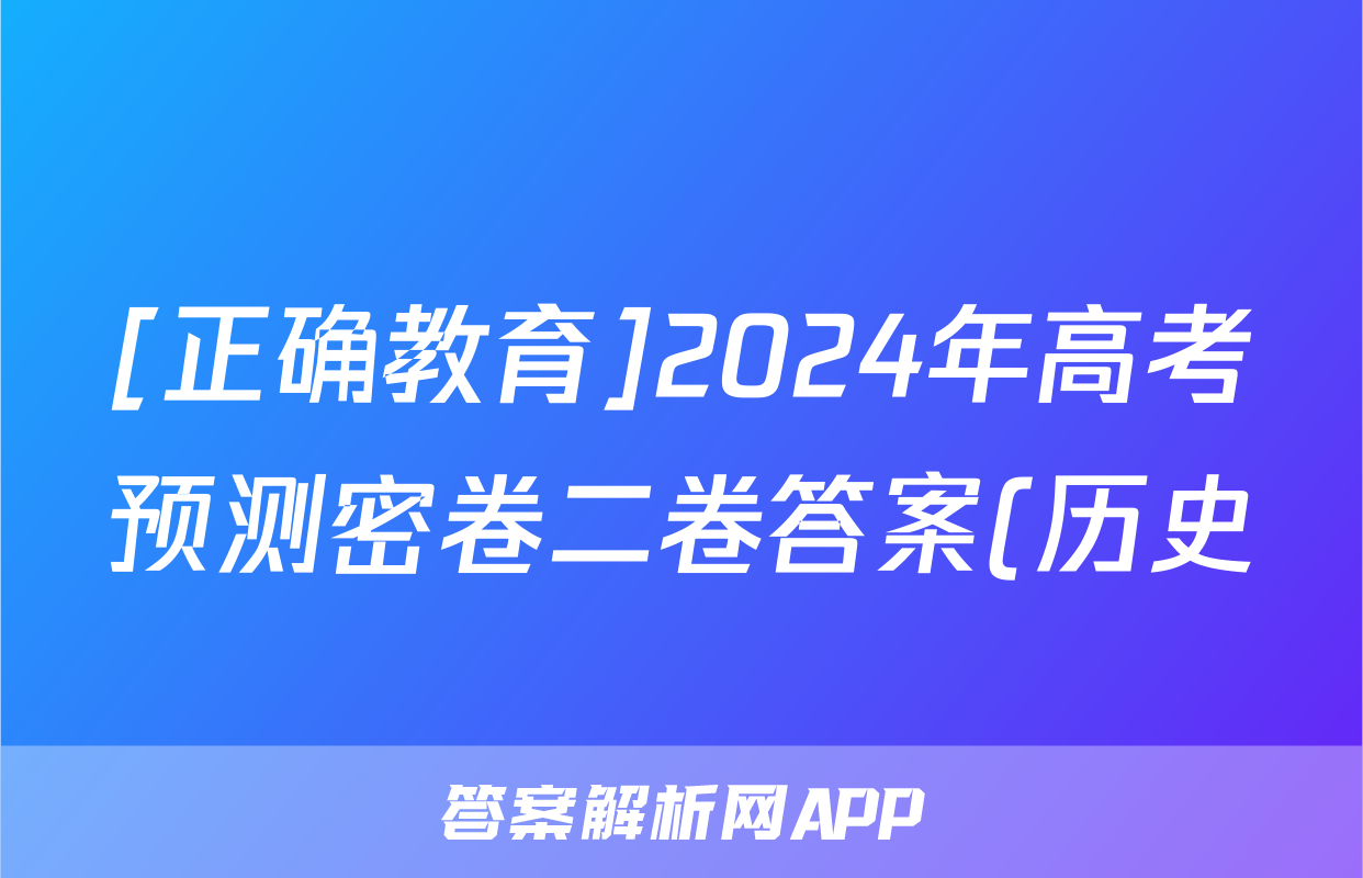[正确教育]2024年高考预测密卷二卷答案(历史),目前2025-2026衡水金卷答案网已经汇总了[正确教育]2024年高考预测密卷二卷答案(历史)的各科答案和试卷,获取更多{{papers_name}}答案解析,请在关注本站。