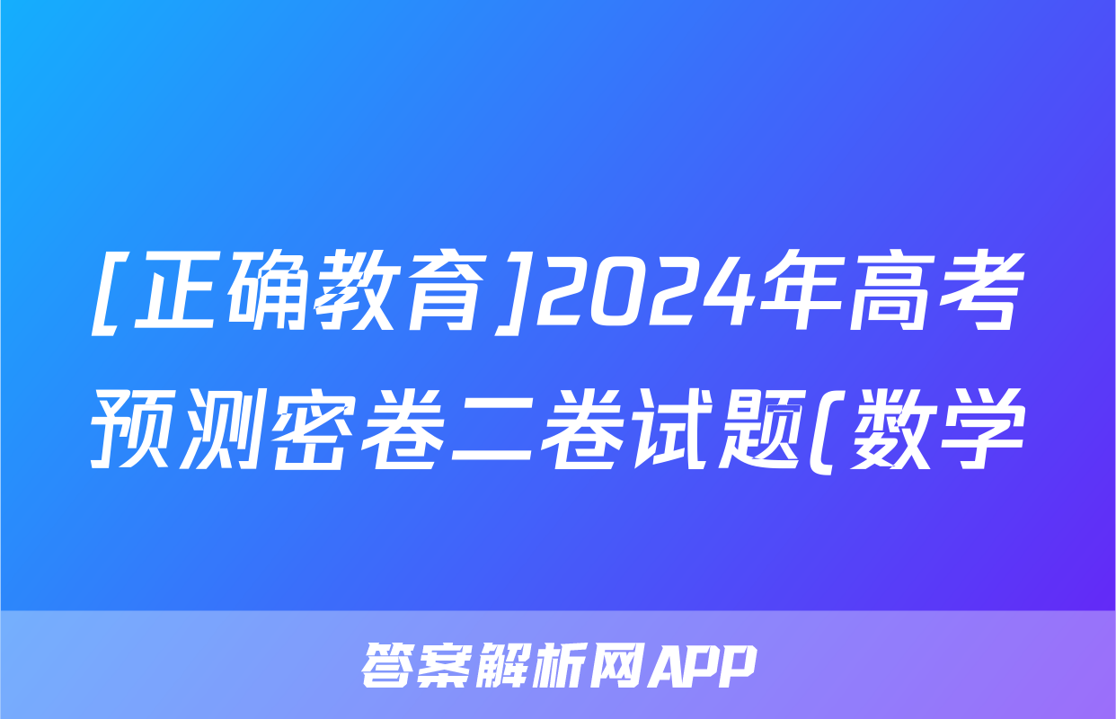 [正确教育]2024年高考预测密卷二卷试题(数学),目前2025-2026衡水金卷答案网已经汇总了[正确教育]2024年高考预测密卷二卷试题(数学)的各科答案和试卷,获取更多{{papers_name}}答案解析,请在关注本站。