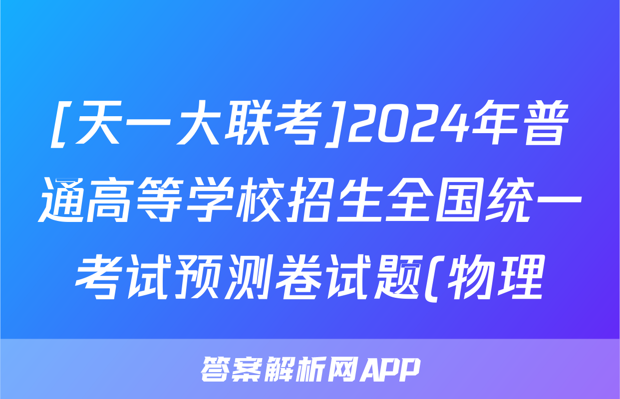 [天一大联考]2024年普通高等学校招生全国统一考试预测卷试题(物理),目前2025-2026衡水金卷答案网已经汇总了[天一大联考]2024年普通高等学校招生全国统一考试预测卷试题(物理)的各科答案和试卷,获取更多{{papers_name}}答案解析,请在关注本站。