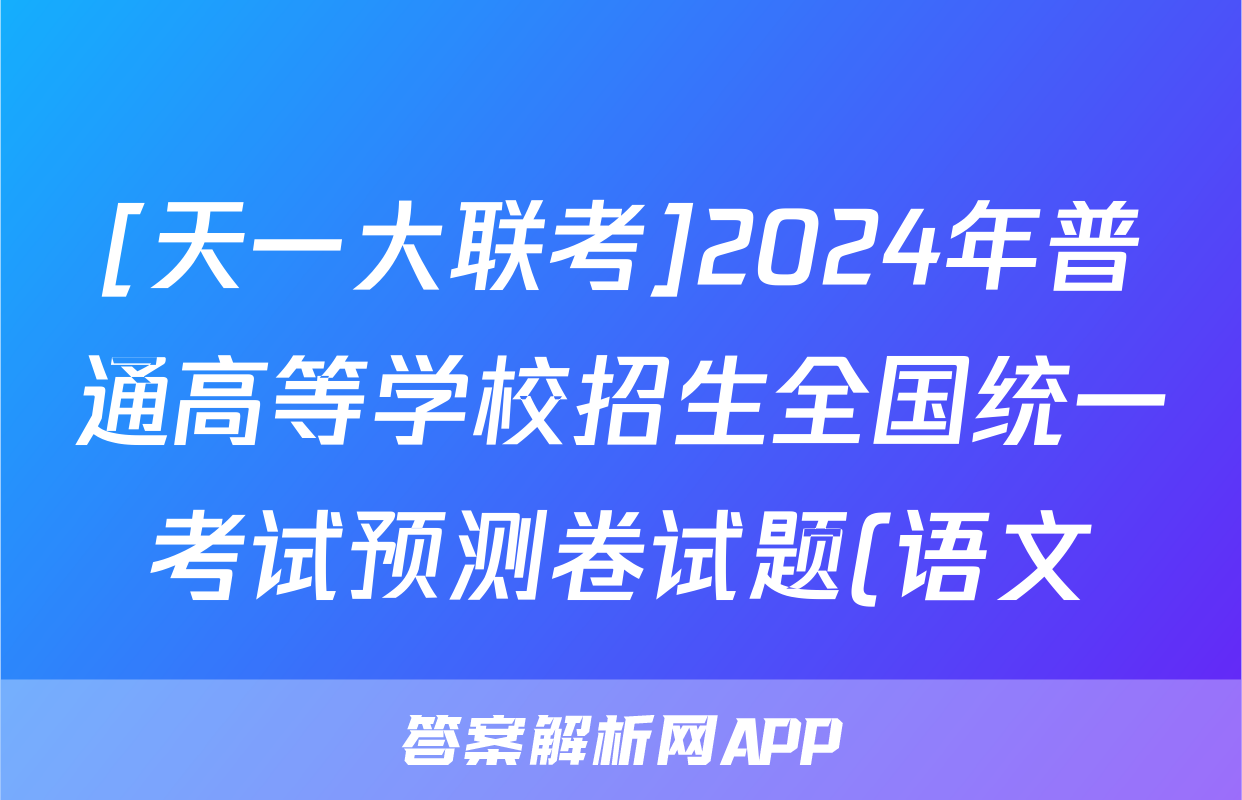 [天一大联考]2024年普通高等学校招生全国统一考试预测卷试题(语文),目前2025-2026衡水金卷答案网已经汇总了[天一大联考]2024年普通高等学校招生全国统一考试预测卷试题(语文)的各科答案和试卷,获取更多{{papers_name}}答案解析,请在关注本站。