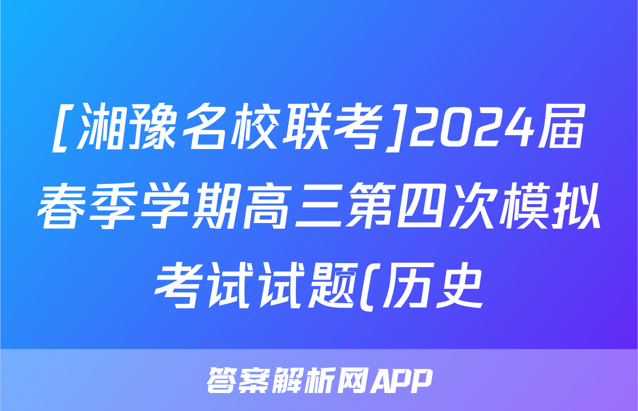 [湘豫名校联考]2024届春季学期高三第四次模拟考试试题(历史),目前2025-2026衡水金卷答案网已经汇总了[湘豫名校联考]2024届春季学期高三第四次模拟考试试题(历史)的各科答案和试卷,获取更多{{papers_name}}答案解析,请在关注本站。