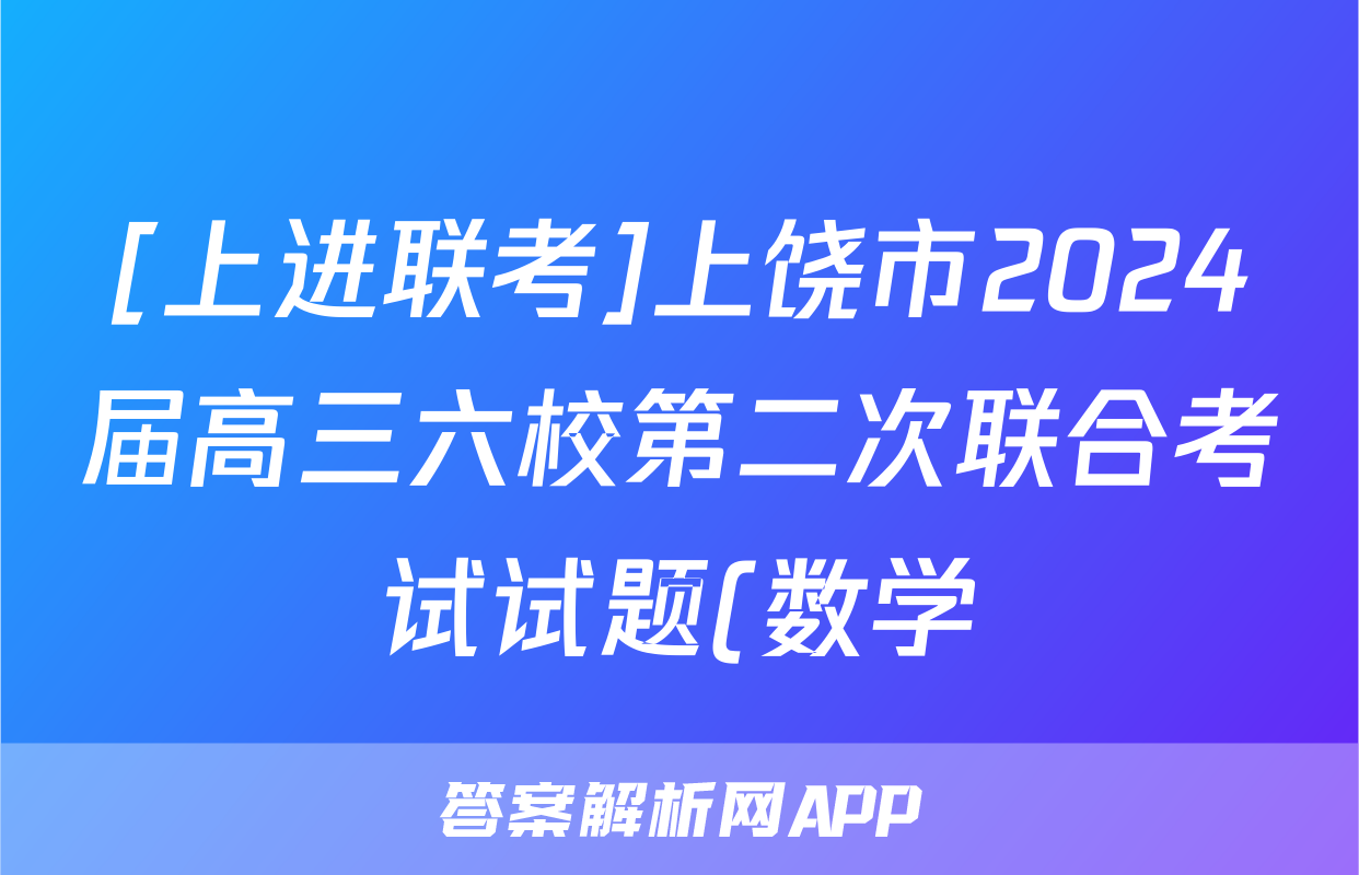 [上进联考]上饶市2024届高三六校第二次联合考试试题(数学),目前2025-2026衡水金卷答案网已经汇总了[上进联考]上饶市2024届高三六校第二次联合考试试题(数学)的各科答案和试卷,获取更多{{papers_name}}答案解析,请在关注本站。