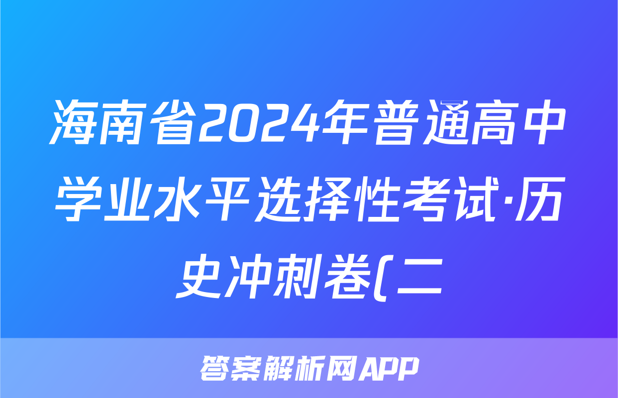 海南省2024年普通高中学业水平选择性考试·历史冲刺卷(二)2[24·(新高考)CCJ·历史·HAIN]答案,目前2025-2026衡水金卷答案网已经汇总了海南省2024年普通高中学业水平选择性考试·历史冲刺卷(二)2[24·(新高考)CCJ·历史·HAIN]答案的各科答案和试卷,获取更多{{papers_name}}答案解析,请在关注本站。