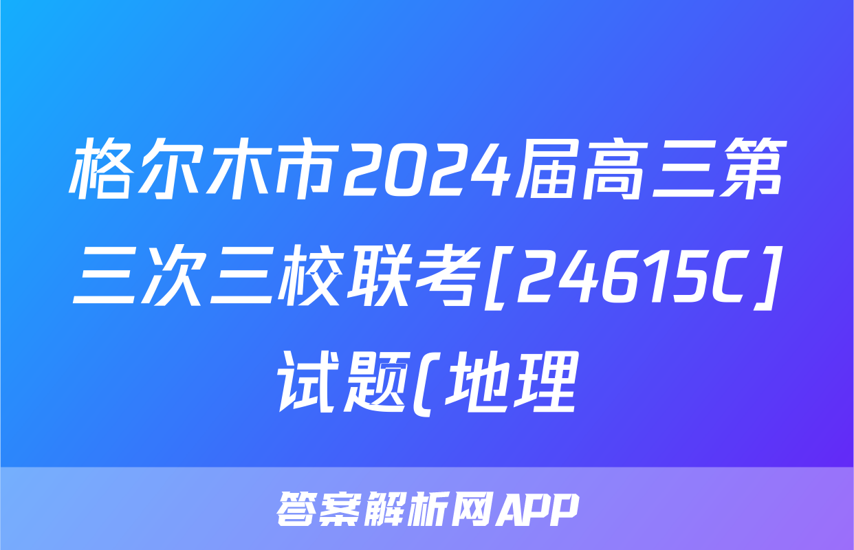 格尔木市2024届高三第三次三校联考[24615C]试题(地理),目前2025-2026衡水金卷答案网已经汇总了格尔木市2024届高三第三次三校联考[24615C]试题(地理)的各科答案和试卷,获取更多{{papers_name}}答案解析,请在关注本站。