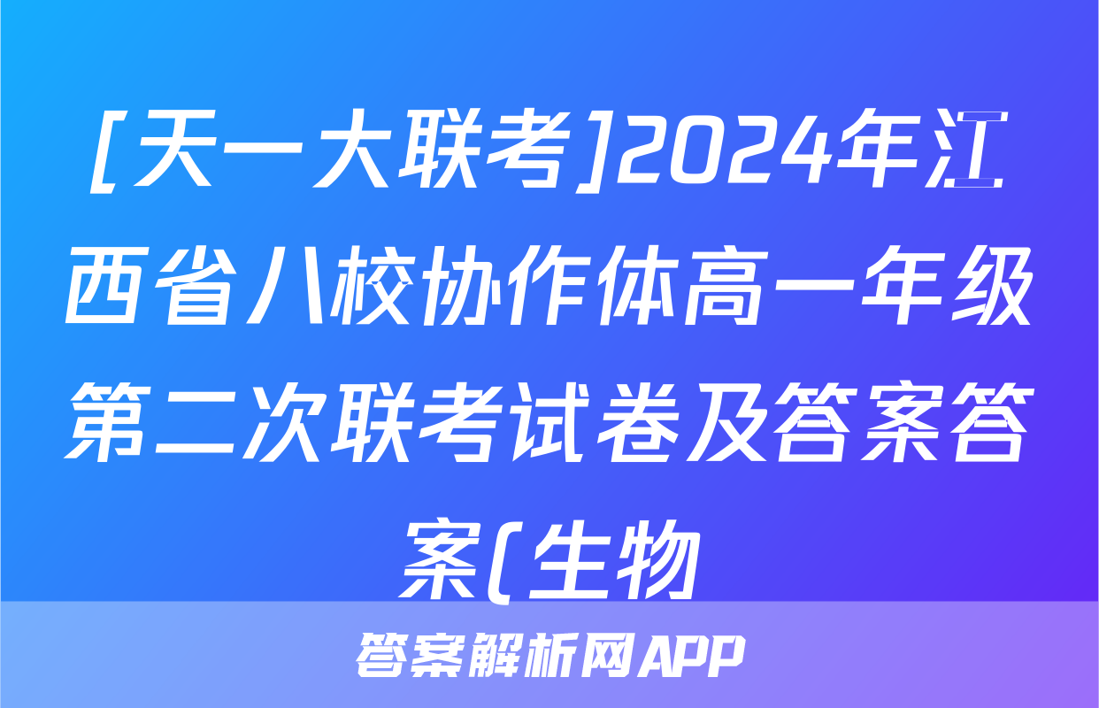 [天一大联考]2024年江西省八校协作体高一年级第二次联考试卷及答案答案(生物),目前2025-2026衡水金卷答案网已经汇总了[天一大联考]2024年江西省八校协作体高一年级第二次联考试卷及答案答案(生物)的各科答案和试卷,获取更多{{papers_name}}答案解析,请在关注本站。