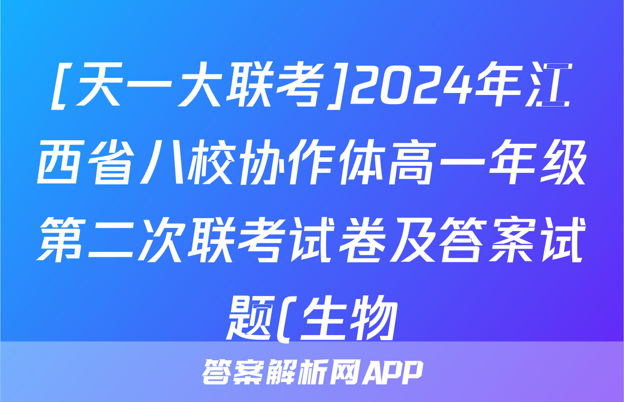 [天一大联考]2024年江西省八校协作体高一年级第二次联考试卷及答案试题(生物),目前2025-2026衡水金卷答案网已经汇总了[天一大联考]2024年江西省八校协作体高一年级第二次联考试卷及答案试题(生物)的各科答案和试卷,获取更多{{papers_name}}答案解析,请在关注本站。