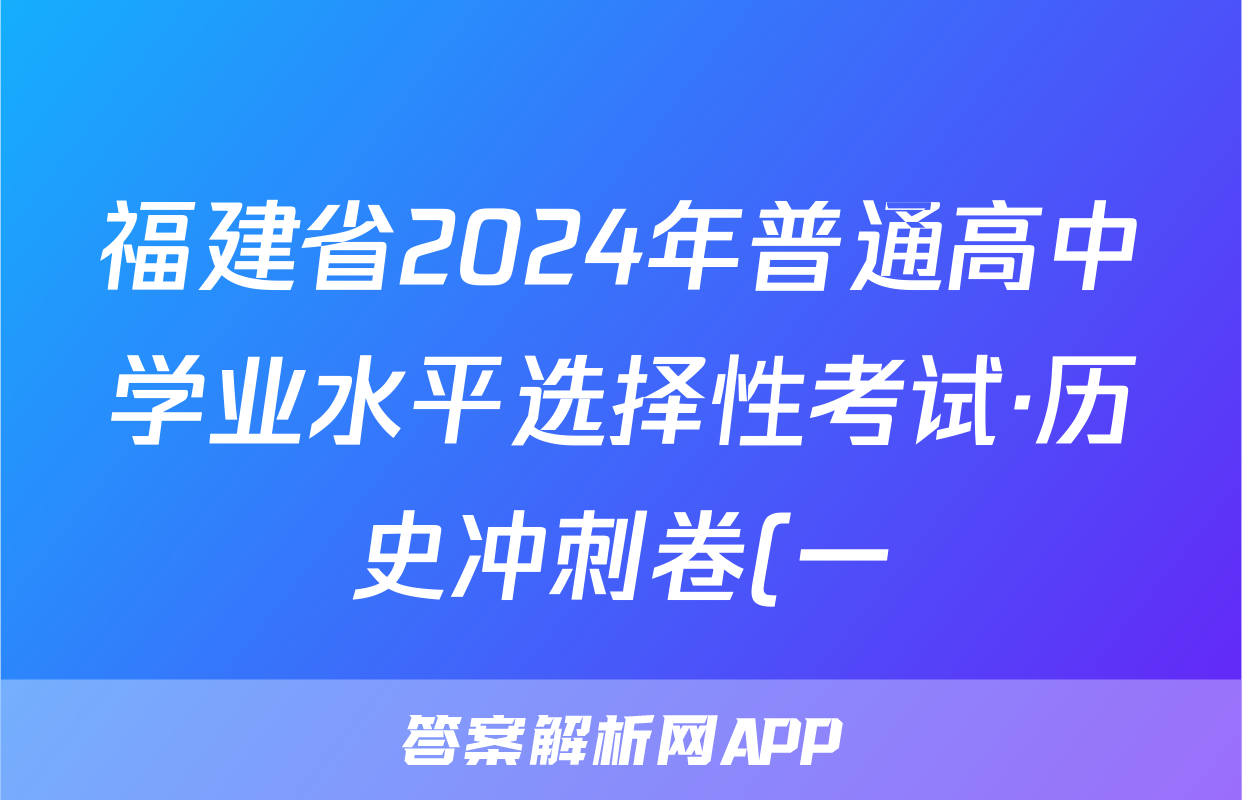 福建省2024年普通高中学业水平选择性考试·历史冲刺卷(一)1[24·(新高考)CCJ·历史·FJ]答案,目前2025-2026衡水金卷答案网已经汇总了福建省2024年普通高中学业水平选择性考试·历史冲刺卷(一)1[24·(新高考)CCJ·历史·FJ]答案的各科答案和试卷,获取更多{{papers_name}}答案解析,请在关注本站。