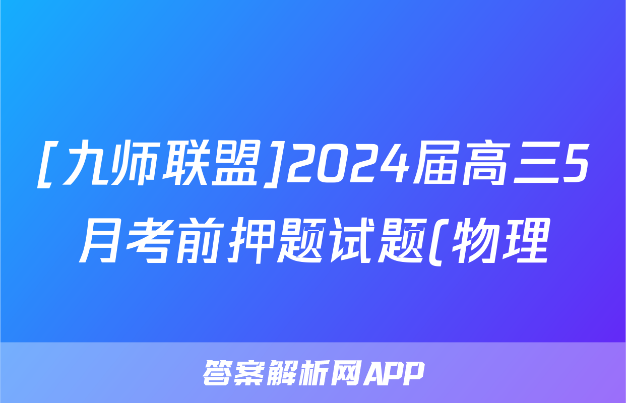 [九师联盟]2024届高三5月考前押题试题(物理),目前2025-2026衡水金卷答案网已经汇总了[九师联盟]2024届高三5月考前押题试题(物理)的各科答案和试卷,获取更多{{papers_name}}答案解析,请在关注本站。