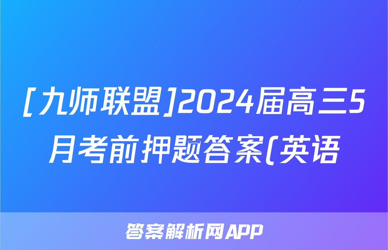 [九师联盟]2024届高三5月考前押题答案(英语),目前2025-2026衡水金卷答案网已经汇总了[九师联盟]2024届高三5月考前押题答案(英语)的各科答案和试卷,获取更多{{papers_name}}答案解析,请在关注本站。