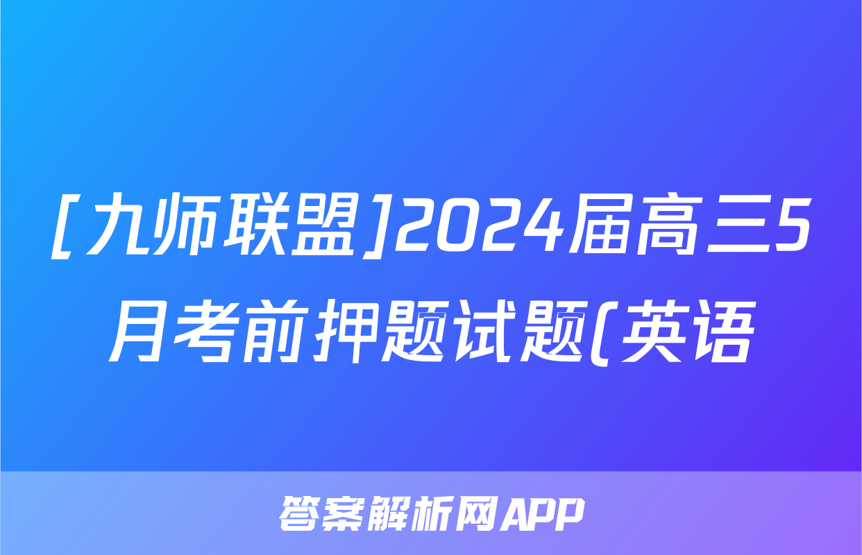 [九师联盟]2024届高三5月考前押题试题(英语),目前2025-2026衡水金卷答案网已经汇总了[九师联盟]2024届高三5月考前押题试题(英语)的各科答案和试卷,获取更多{{papers_name}}答案解析,请在关注本站。