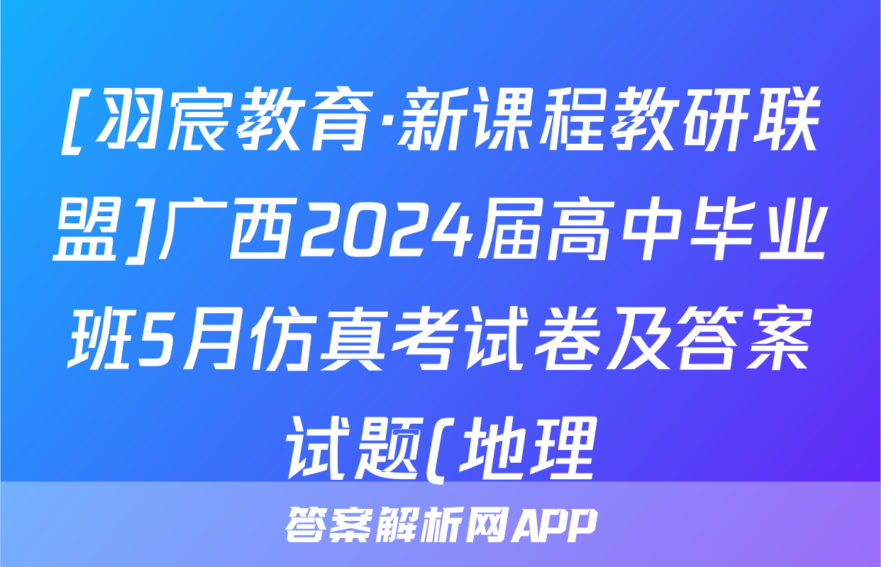 [羽宸教育·新课程教研联盟]广西2024届高中毕业班5月仿真考试卷及答案试题(地理),目前2025-2026衡水金卷答案网已经汇总了[羽宸教育·新课程教研联盟]广西2024届高中毕业班5月仿真考试卷及答案试题(地理)的各科答案和试卷,获取更多{{papers_name}}答案解析,请在关注本站。