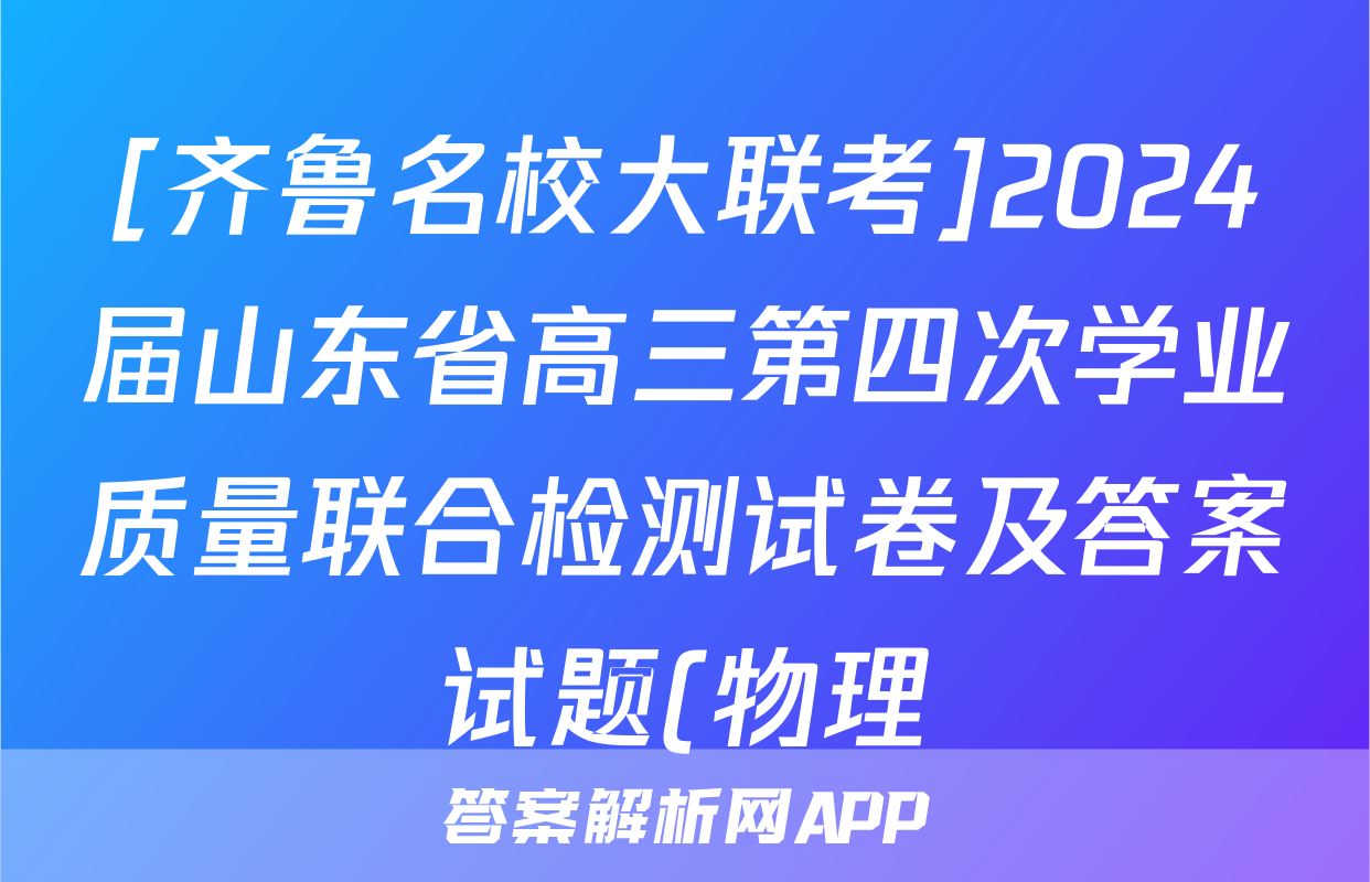 [齐鲁名校大联考]2024届山东省高三第四次学业质量联合检测试卷及答案试题(物理),目前2025-2026衡水金卷答案网已经汇总了[齐鲁名校大联考]2024届山东省高三第四次学业质量联合检测试卷及答案试题(物理)的各科答案和试卷,获取更多{{papers_name}}答案解析,请在关注本站。
