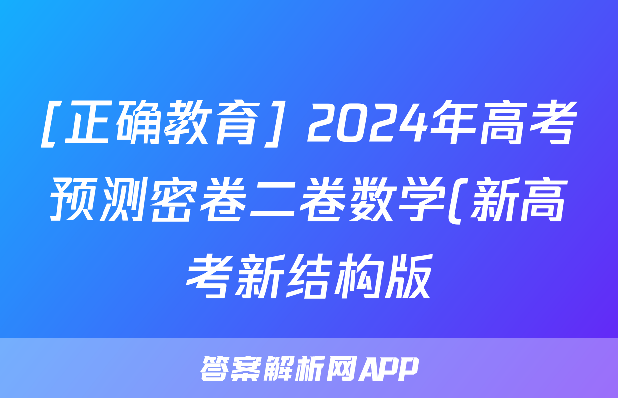 [正确教育] 2024年高考预测密卷二卷数学(新高考新结构版)试题,目前2025-2026衡水金卷答案网已经汇总了[正确教育] 2024年高考预测密卷二卷数学(新高考新结构版)试题的各科答案和试卷,获取更多{{papers_name}}答案解析,请在关注本站。