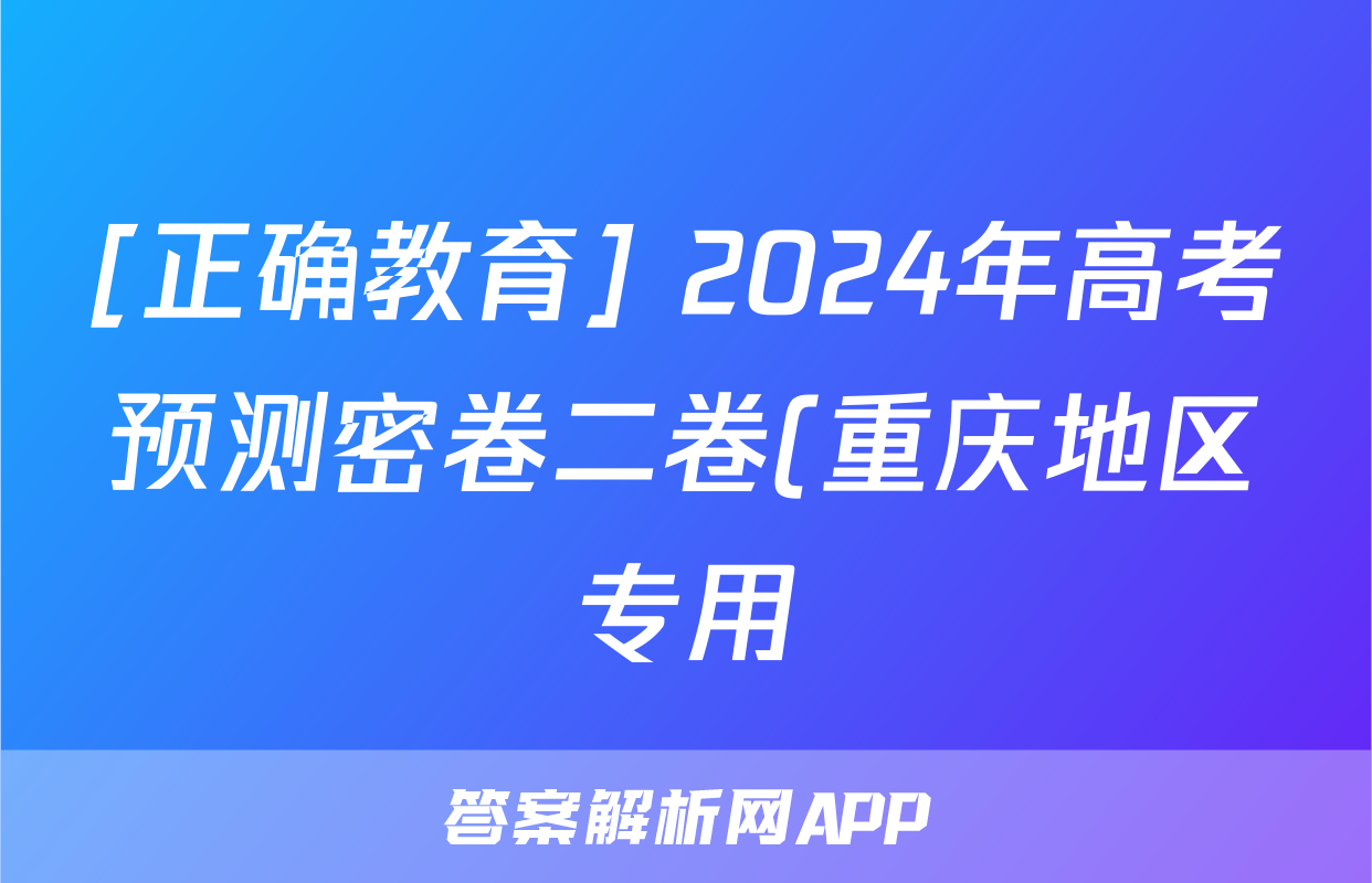 [正确教育] 2024年高考预测密卷二卷(重庆地区专用)政治试题,目前2025-2026衡水金卷答案网已经汇总了[正确教育] 2024年高考预测密卷二卷(重庆地区专用)政治试题的各科答案和试卷,获取更多{{papers_name}}答案解析,请在关注本站。
